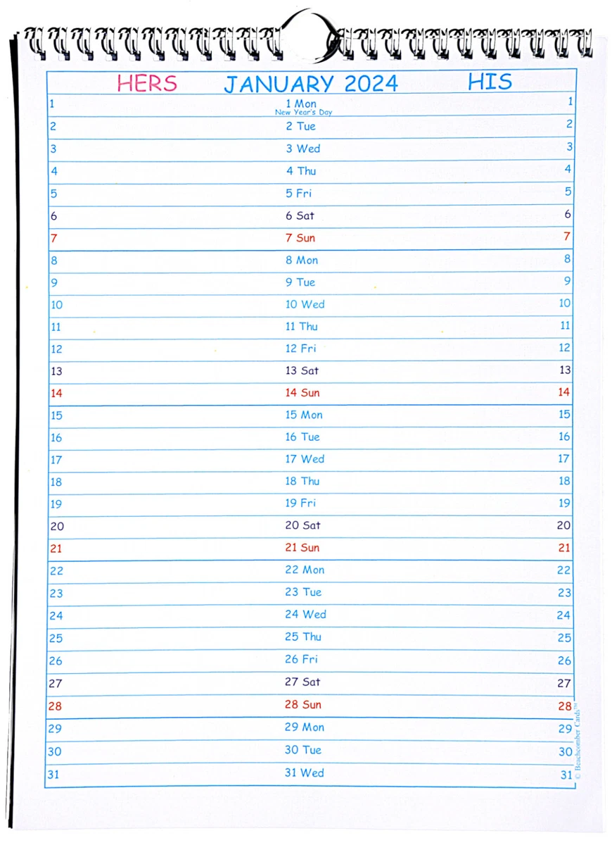 HERS / HIS CALENDAR 2024 A4 size made in UK | eBay