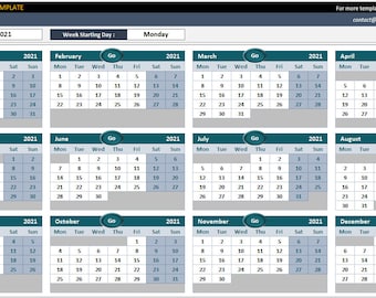 Dynamic Calendar Excel Template 2023 2030 Dynamic Etsy